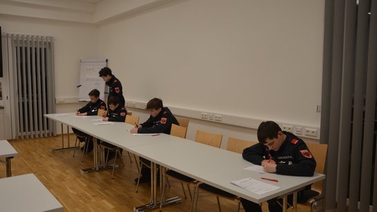 Hier ging es darum, das bisher erlernte Wissen abzuprüfen und zu festigen. Diese Prüfung teilt sich in viele verschiedene Themengebiete wie Allgemeinwissen, Knotenkunde, Gefährliche Stoffe, Erste Hilfe und viele weitere Themen. Die Erprobung ist sozusagen ein kleiner Wissenscheck bevor es für unsere Jugendlichen am 08.03. zum Wissenstest geht.