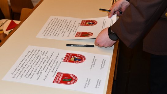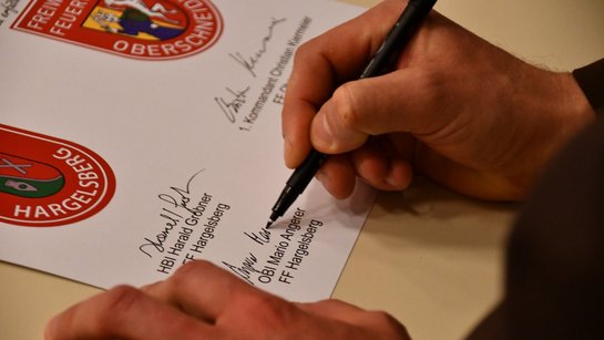 Dann wurde grenzübergreifende Feuerwehrgeschichte geschrieben: Die Partnerschaft zwischen Hargelsberg und Oberschneiding wurde offiziell besiegelt!