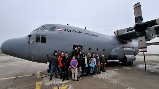 Nach spannenden Einblicken in den Alltag eines Flugretters, neugierigen Blicken in den Christophorus und der Beantwortung vieler Fragen ging es weiter zum Bundesheer. Dort erhielten wir eine kurze Führung durch die Militärfeuerwehr und hatten die Gelegenheit, eine Hercules-Transportmaschine des Österreichischen Bundesheeres von innen und außen zu besichtigen und zu bestaunen.